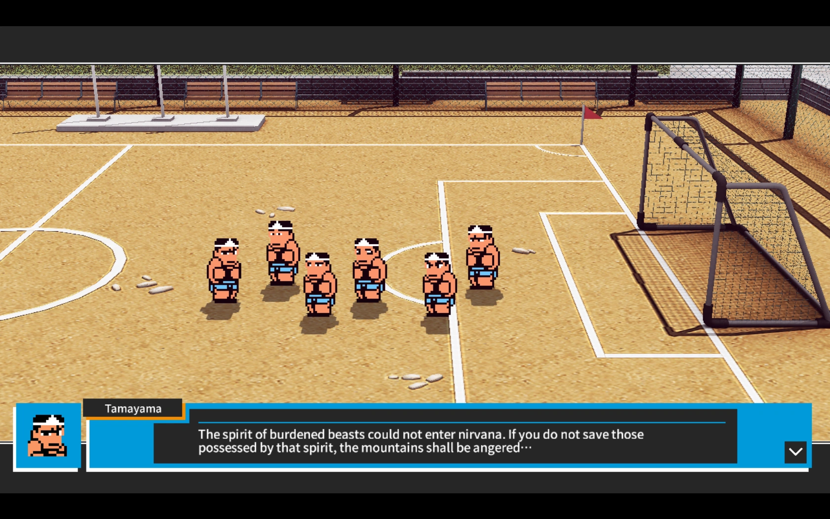 The game acts as a sequel to River City Super Sports Challenge ~All Stars Special~ and has similar gameplay which focuses only on the Battle Royal event. The game adds new arenas, tweaks the movesets of every character (removing running event specific moves) and has all the DLC teams from the previous game available from the start. The game expands on the Nekketsu State from the previous game by adding a Rage Meter which triggers its effect. Each team now also has their own story in the Single Play mode which makes many jokes and references from previous games in the Kunio-kun franchise.