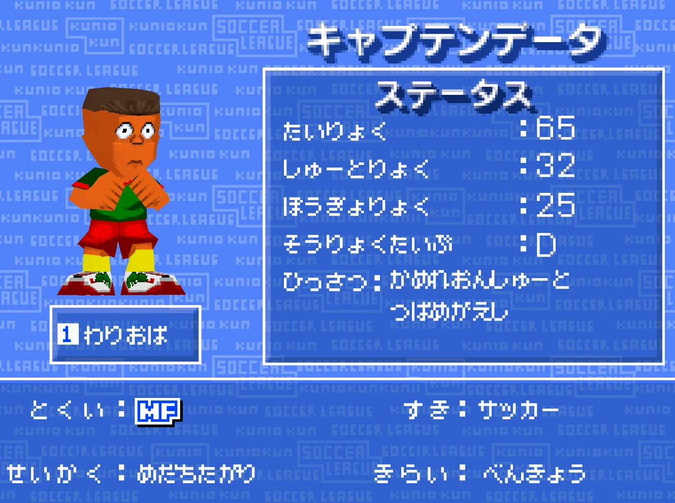 Warioba debuts in Kunio-kun's Nekketsu Soccer League as the captain of Cameroon's team.